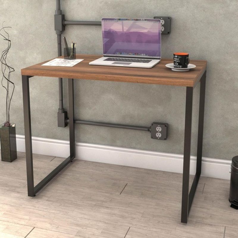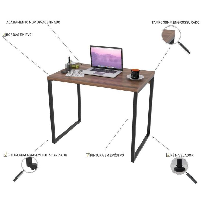 Mesa Para Escritório Home Office Estilo Industrial Form C01 90 Cm Nogal - Lyam Decor