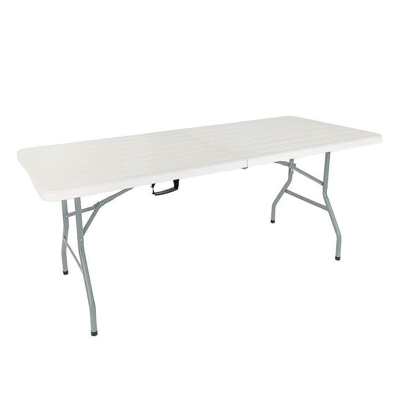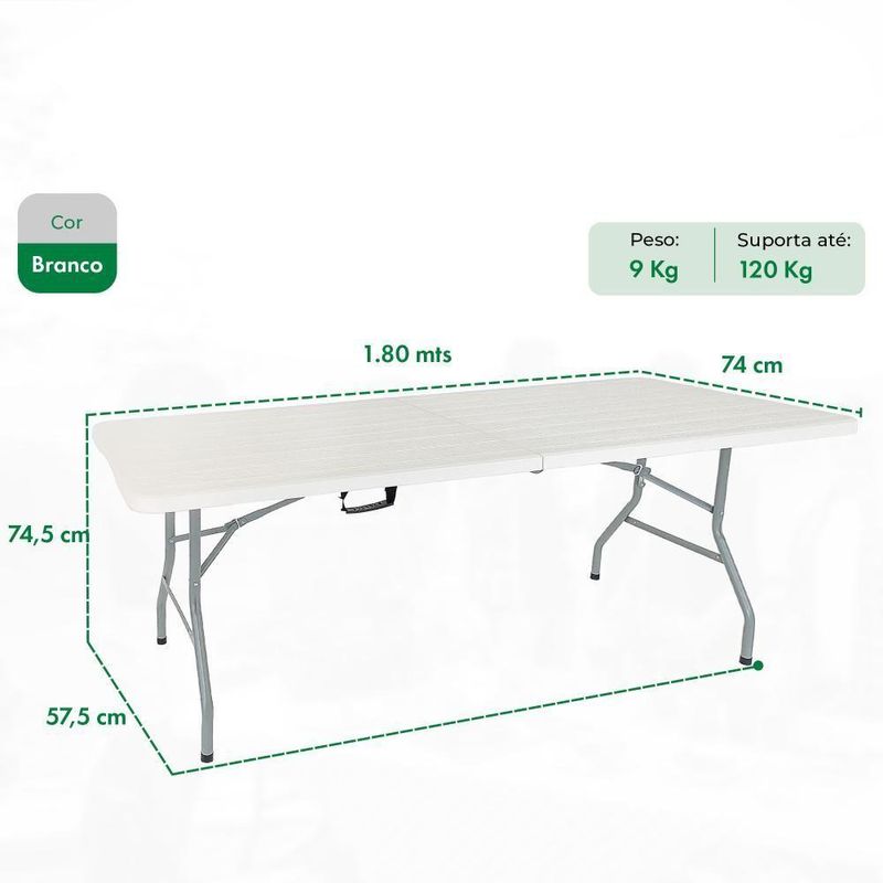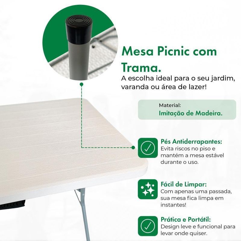 Mesa Picnic Dobrável Vira Maleta Portátil 1,80m Tampo Madeira Premium Branca