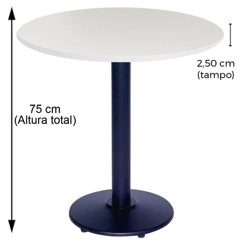 Mesa Zeta Ferro Preto 75 Cm (alt) Disco Redondo Tampo Mdp Redondo 60 Cm (larg) X 2,5 Cm (alt) Branco