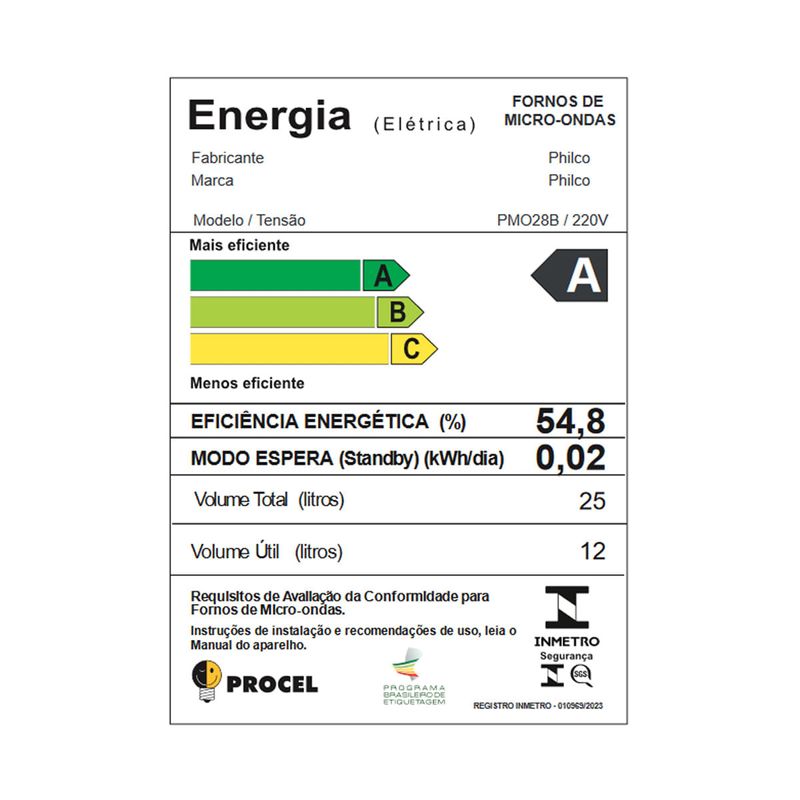 Com capacidade de 25 litros, o micro-ondas Philco PMO28B é um modelo compacto que se adapta facilmente a qualquer espaço na cozinha.