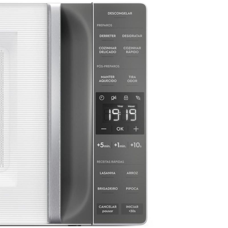 O Micro-ondas Electrolux Branco 23L Efficient (ME23B) é pensado para facilitar sua rotina na cozinha. Com ele, você economiza tempo no preparo de suas receitas graças a sua potência de 1100W, e garante maior eficiência no consumo diário de energia por sua Classificação energética A. O ME23B conta com a tecnologia de Descongelamento Assistido da Electrolux para alcançar resultados mais uniformes ao descongelar os ingredientes, avisando no painel o momento certo de virar ou mexer os alimentos. Seu painel inteligente, com ajustes automáticos de potência, disponibiliza quatro modos de preparo diferentes e funcionais para tornar sua rotina mais prática: derreter; desidratar; cozinhar rápido e cozinhar delicado. Acione a Função Desidratar para fazer chips de frutas ou vegetais, além de desidratar ervas para conservá-las por mais tempo. Selecione a Função Cozinhar Delicado se quiser preparar alimentos macios, como peixes e alguns tipos de vegetais. Para vegetais mais duros e carne bovina, utilize a Função Cozinhar Rápido. O Micro-ondas Electrolux possui a função Manter Aquecido, que conserva suas receitas recém preparadas quentes e deliciosas até o consumo. A função Tira Odor é ideal para manter seu produto livre de possíveis odores dos preparos anteriores graças ao sistema de recirculação do ar interno.