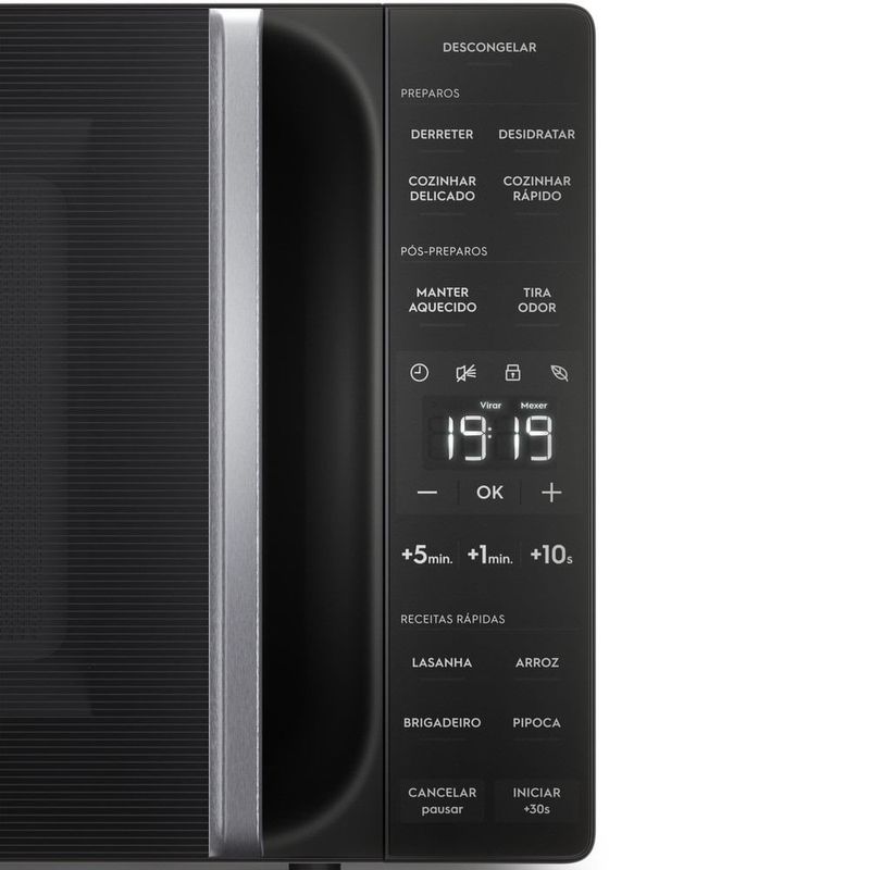 Ele conta com a tecnologia de Descongelamento Assistido da Electrolux para alcançar resultados mais uniformes ao descongelar os ingredientes, avisando no painel o momento certo de virar ou mexer os alimentos.