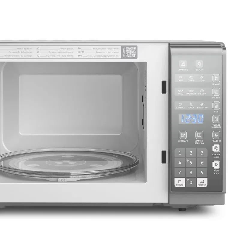 O Micro-ondas Electrolux conta com uma porta que, quando fechada, deixa apenas aparentes os botões mais utilizados, fazendo com que o ambiente fique menos poluído visualmente. O display do Micro-ondas Electrolux tem display econômico, que é acionado com a função "Desliga display".