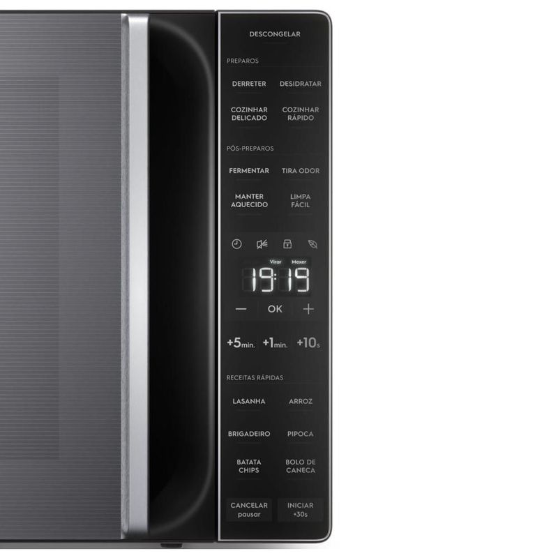 O Micro-ondas Electrolux Prata 36L Efficient (ME36S) é pensado para facilitar sua rotina na cozinha. Com ele, você economiza tempo no preparo de suas receitas graças a sua potência de 1600W, a maior do mercado na categoria. Ele conta com a tecnologia de Descongelamento Assistido da Electrolux para alcançar resultados mais uniformes ao descongelar os ingredientes, avisando no painel o momento certo de virar ou mexer os alimentos. Embora seja compacto por fora, o micro-ondas Electrolux oferece uma ampla capacidade interna de 36L. É ideal para receber diferentes tamanhos de travessas. Com ele, você otimiza o espaço de sua cozinha sem perder capacidade. Seu painel inteligente, com ajustes automáticos de potência, disponibiliza cinco modos de preparo diferentes e funcionais para tornar sua rotina mais prática: fermentar; derreter; desidratar; cozinhar rápido e cozinhar delicado. A Função Fermentar auxilia a acelerar¹ o processo de fermentação em massas. Experimente para pães e pizzas, por exemplo. Derreta chocolate e manteiga com facilidade e no ponto certo com a Função Derreter. Acione a Função Desidratar para fazer chips de frutas ou vegetais, além de desidratar ervas para conservá-las por mais tempo. Selecione a Função Cozinhar Delicado se quiser preparar alimentos macios, como peixes e alguns tipos de vegetais. Para vegetais mais duros e carne bovina, utilize a Função Cozinhar delicado. O Micro-ondas Electrolux possui a função Manter Aquecido, que conserva suas receitas recém preparadas quentes e deliciosas até o consumo. A função Tira Odor é ideal para manter seu produto livre de possíveis odores dos preparos anteriores graças ao sistema de recirculação do ar interno. Econômico para o dia a dia! Possui eficiência energética A e função Economia de Energia, que desliga o display quando o micro-ondas não está em uso. Compacto por fora, enorme por dentro! Aproveite todo o espaço oferecido por um micro-ondas com capacidade de 36L sem deixar de otimizar o espaço de sua cozinha. Função Mudo: Configure seu micro-ondas para não emitir som durante o uso e mantenha o ambiente silencioso sempre que quiser. Função Limpa Fácil: Facilita a remoção de gorduras e respingos provocadas pelo uso. Função Trava Painel: Garante que o painel não seja acionado ou alterado indevidamente por crianças, por exemplo, e impede que os comandos sejam acionados durante a limpeza do painel. Seis Receitas Pré-Programadas: Oferece a facilidade que sua rotina merece. Com apenas um toque, faça: batata chips, bolo de caneca, lasanha, arroz, brigadeiro e pipoca. QR Code: Você pode acessar mais detalhes sobre os benefícios do seu produto na palma de sua mão.