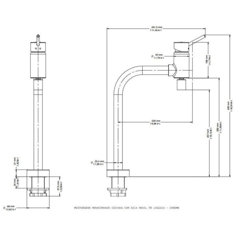 Misturador de Pia Docol Lóggica para Cozinha, Monocomando, Cromado Características Marca: Docol Modelo: Lóggica Ref.: 578106 Cor: Cromado Tipo: Monocomando Aplicação: Mesa Cozinha Especificações Acabamento superficial cromado, alta resistência a corrosão e riscos; Bica giratória 150°: possibilita que o produto seja utilizado em pias de duas cubas; Arejador articulável: mais flexibilidade e conforto no uso; Funcionamento perfeito em baixa e alta pressão de 0,2 a 4 kgf/cm² ou 3 a 57 psi; Temperatura máxima da água: 70°C; Bitola de 1/2"; Dimensões Altura: 42 cm Peso: 2,60 Kg Garantia: 60 meses