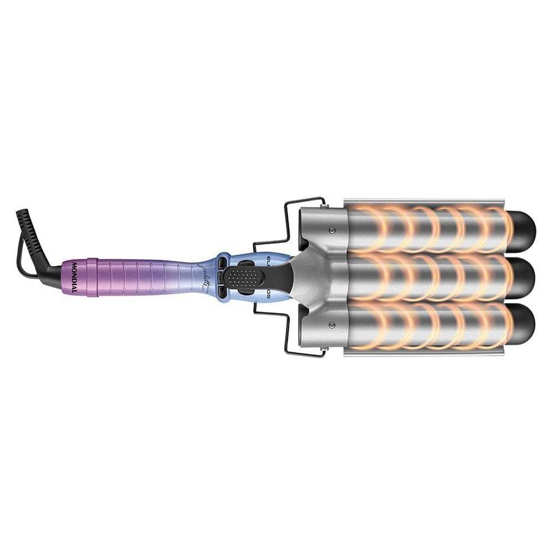 EFEITO TRIONDASO Modelador de Cachos Triondas Colors proporciona uma finalização impecável com ondas naturais, criando o famoso beach waves, aquele estilo praia ou sereia queridinho das famosas. O resultado fica moderno, despojado e, seja seu comprimento longo ou curto, a finalização fica perfeita!