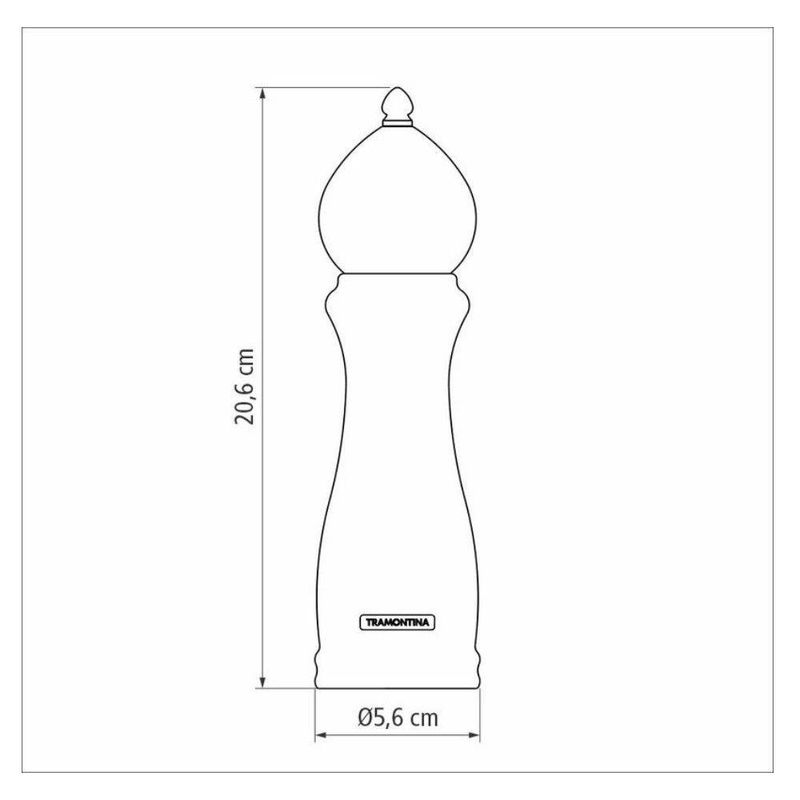 Dimensões Produto (Compr. X Larg. X Alt.): 0,56 x 0,56 x 20,6 cm.Altura: 20,6 cm.Moedor de Sal e Pimenta Churrasco Black em Cerâmica e Recipiente em Madeira 20,6 cm Tramontina - Na sua casa