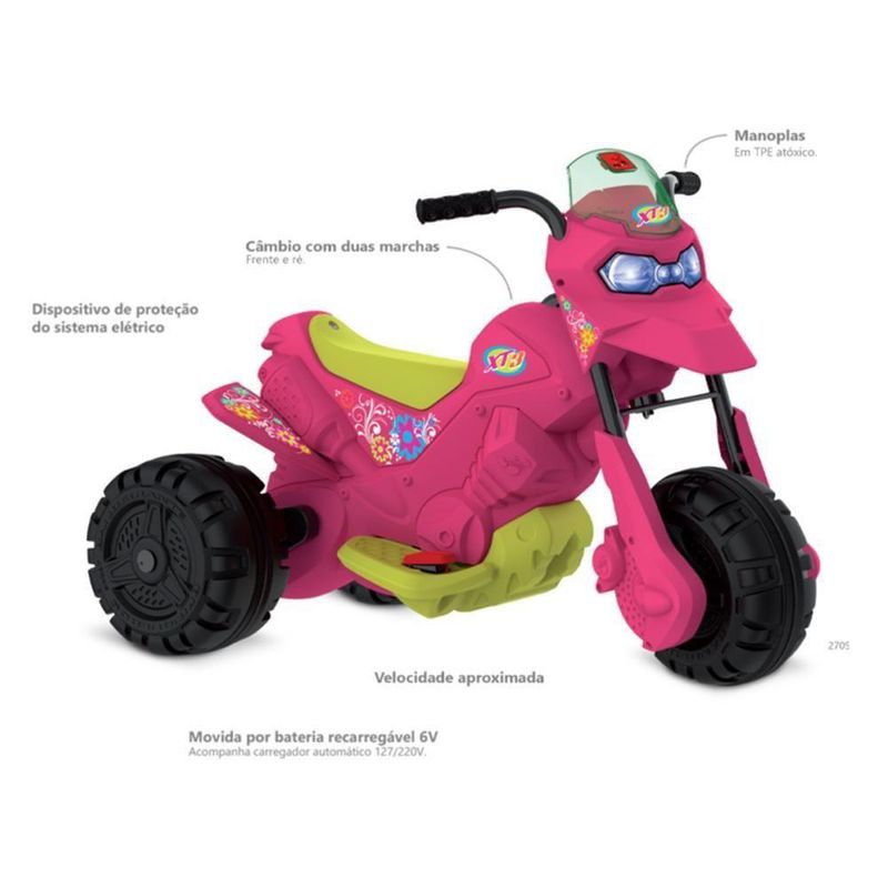 Moto Elétrica Bandeirante Infantil Pink Xt3 Até 25kg Rosa
