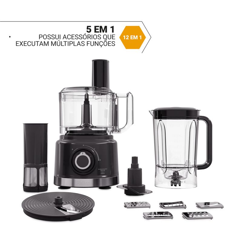 Funções: Liquidificador, Processador, Espremedor de Frutas, ralar e fatiar