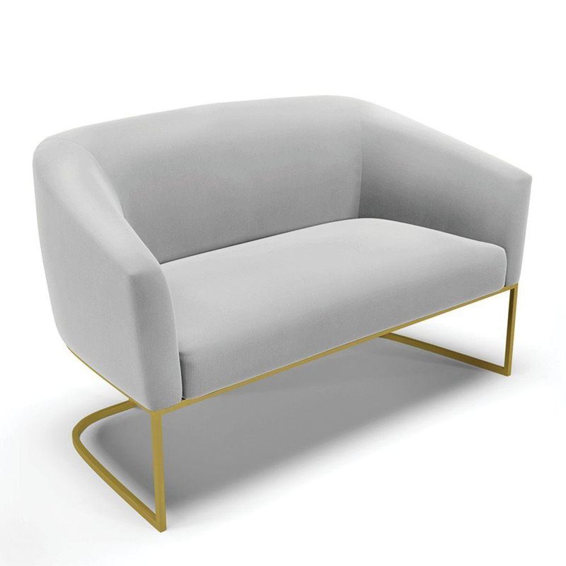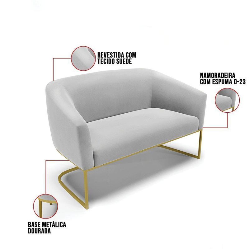 Namoradeira E 2 Poltronas Base Industrial Dourado Stella Suede Cinza D03 - D'rossi