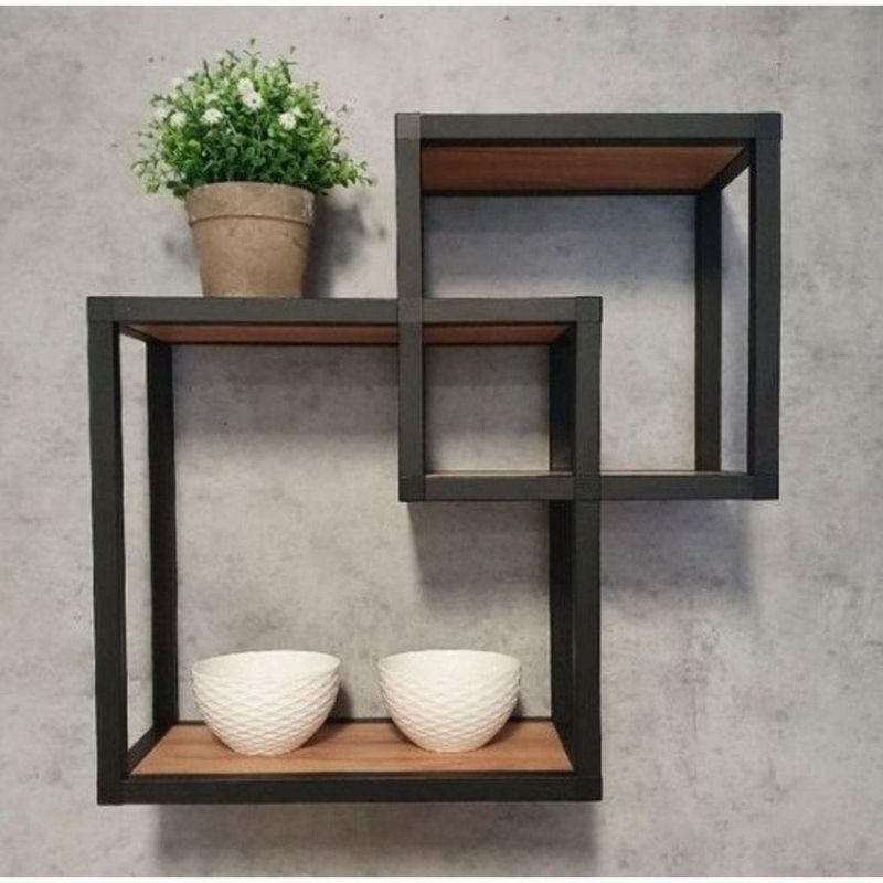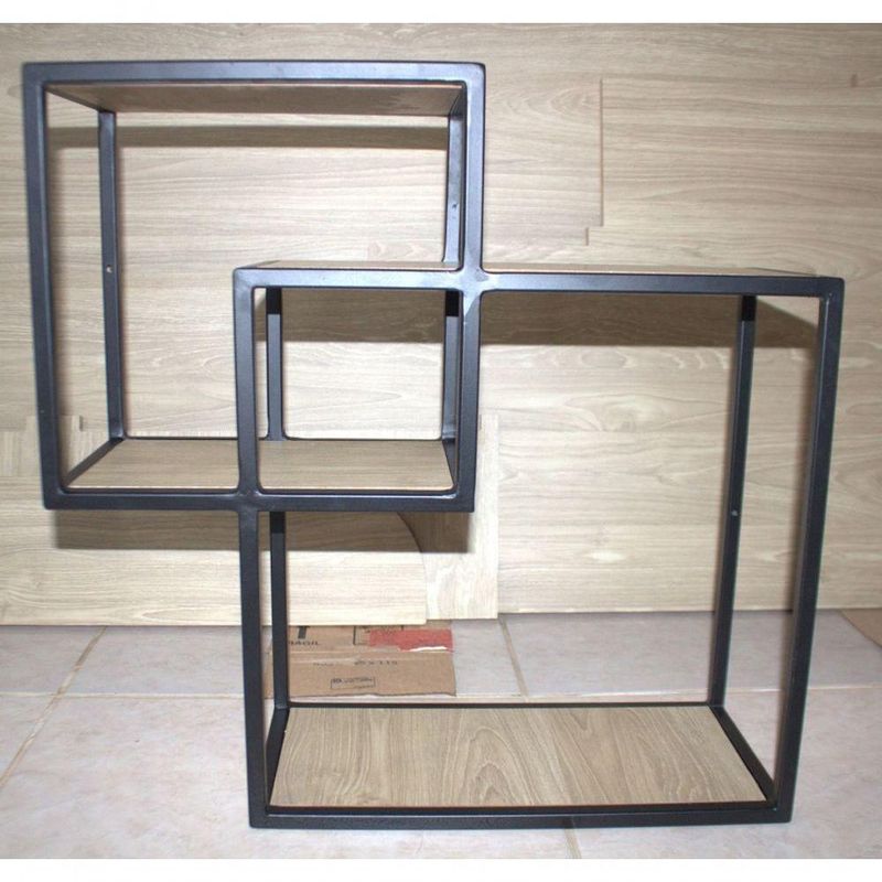 Nicho Duo Cubo Aço Ferro Metal Robusto Cor Preto Mdf Claro Estilo Industrial Ni-01