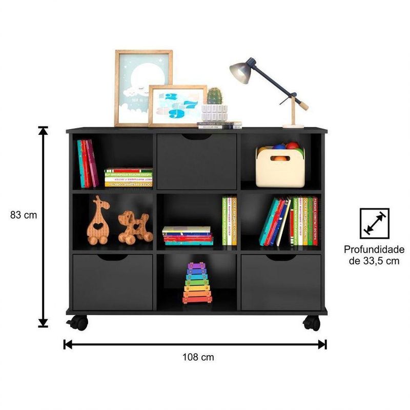 Nicho Organizador com Rodizios 3 Gavetas Qmovi Preto Preto