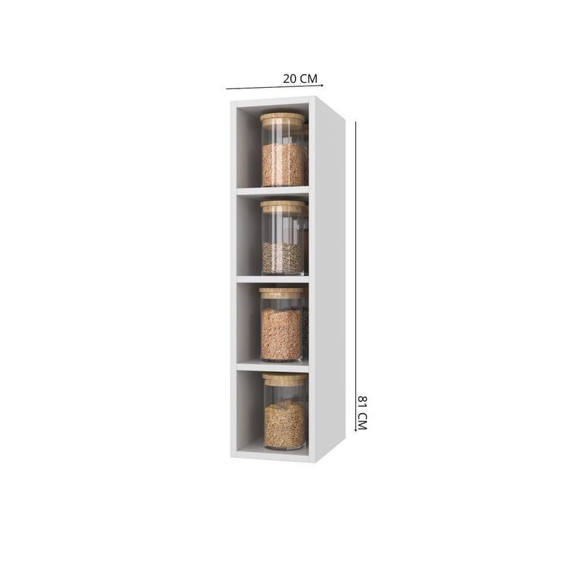 - As cores do produto podem sofrer variação de acordo com o seu monitor a iluminação do seu ambiente ou sua percepção visual. Requer montagem: Sim | Tipo de prateleira: Cozinha | Altura: 81 | Comprimento: 20 | Profundidade: 30 cm | Fabricante: Indekes | Inclui manual de montagem: Sim | Material: MDP Cor: Branco