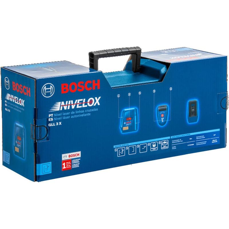 O Nível a Laser Bosch Nivelox GLL 3 x Profissional possui 3 linhas, sendo a solução versátil para trabalhos no interior. Composto por 1 Linha vertical, 1 linha horizontal que cruzam e 1 linha vertical na lateral para várias aplicações.