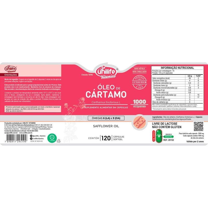 Óleo De Cartamo 1000mg Com 120 Cápsulas Unilife