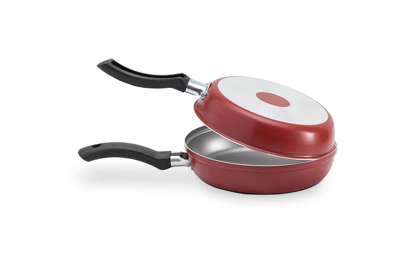 Para preparar omeletes rápidas e perfeitas, a omeleteira de 18 cm de diâmetro, com antiaderente pro-flon, da linha Ruby tem estrutura de alumínio que dissipa melhor o calor cozinhando a omelete por igual. O revestimento interno impede as omeletes de grudarem mesmo com uso reduzido de óleo. O material também facilita a limpeza. Sua segurança está garantida com os cabos de baquelite que não aquecem. A omeleteira da linha Ruby está disponível na cor vermelha trazendo maia vida para a sua cozinha.
