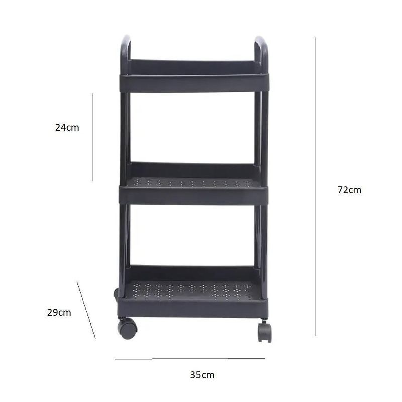 Carrinho Organizador 3 Prateleiras – Compacto, Versátil e Prático!Descrição do Produto:Otimize seu espaço com o Carrinho Organizador de 3 Prateleiras, ideal para armazenar alimentos, acessórios de banho, cosméticos, produtos de cuidado pessoal, livros e muito mais. Fabricado em material PP resistente, é fácil de limpar e extremamente durável. Sua montagem é rápida e prática, sem a necessidade de ferramentas ou parafusos – basta encaixar as peças!Características Principais:Material: Polipropileno (PP) durável e fácil de limpar.Design Compacto: Ideal para cozinhas, banheiros, salas e quartos.Rodas Giratórias: Rodas 360° para facilitar o transporte entre os ambientes.Economia de Espaço: Aproveitamento otimizado de espaços pequenos.Montagem Simples: Sem complicações, sem ferramentas, apenas encaixe.Especificações Técnicas:Cor: Preto.Dimensões: 35 x 29 x 72 cm (C x L x A).Número de Prateleiras: 3.Design Hoco: À prova de umidade para manter os itens secos. Diferenciais:Organização prática para diversos ambientes.Tampa opcional para acomodar itens maiores, como garrafas.Estrutura leve, mas robusta, que facilita a limpeza e movimentação.Ideal para otimizar o armazenamento no dia a dia.Deixe sua casa ou escritório mais organizado com este carrinho multifuncional, que combina praticidade, design moderno e versatilidade!