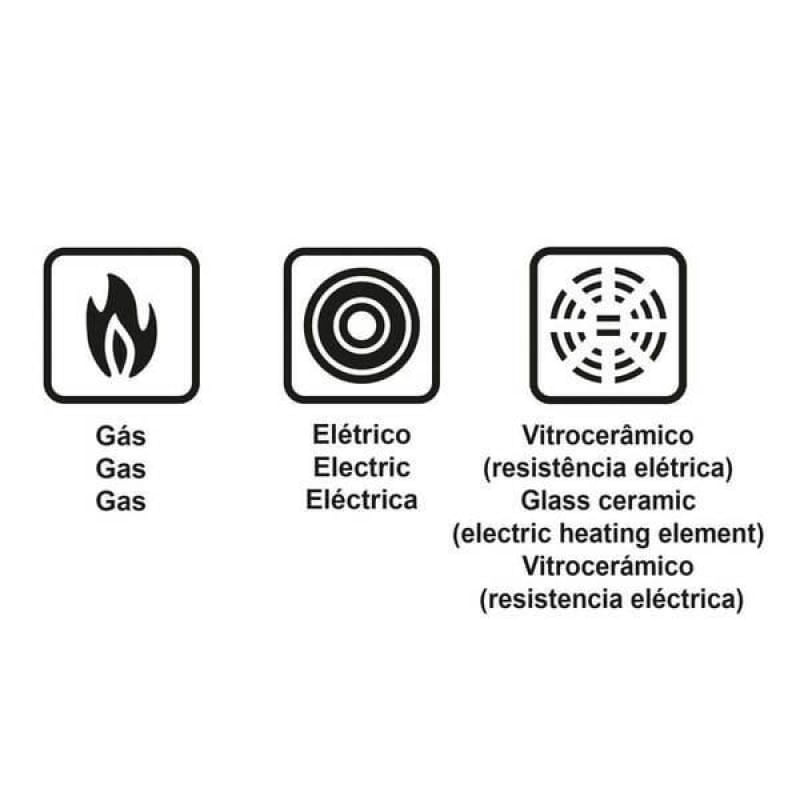 - Pode ser utilizada em fogão a gás, elétrico e vitrocerâmico (resistência elétrica).
