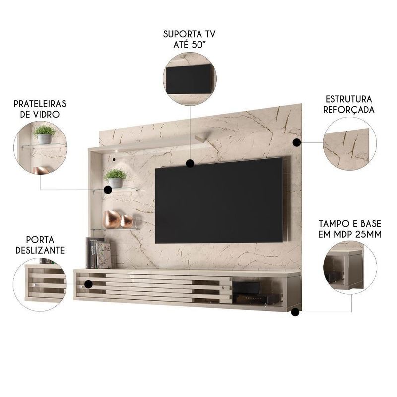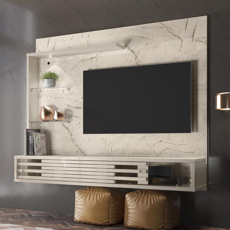 O Painel 50 Pol e Bancada Suspensa Keren M01 Off/Calacata, da Mpozenato, combina sofisticação e funcionalidade para transformar sua Sala de Estar.