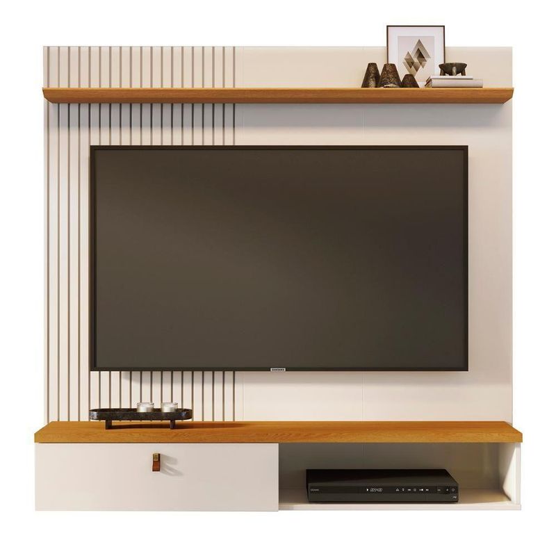 O Painel 55 Pol e Bancada Suspensa Talyn M01 Off/Cinamomo, da Mpozenato, é a escolha ideal para quem busca um design sofisticado e funcional para a Sala de Estar.