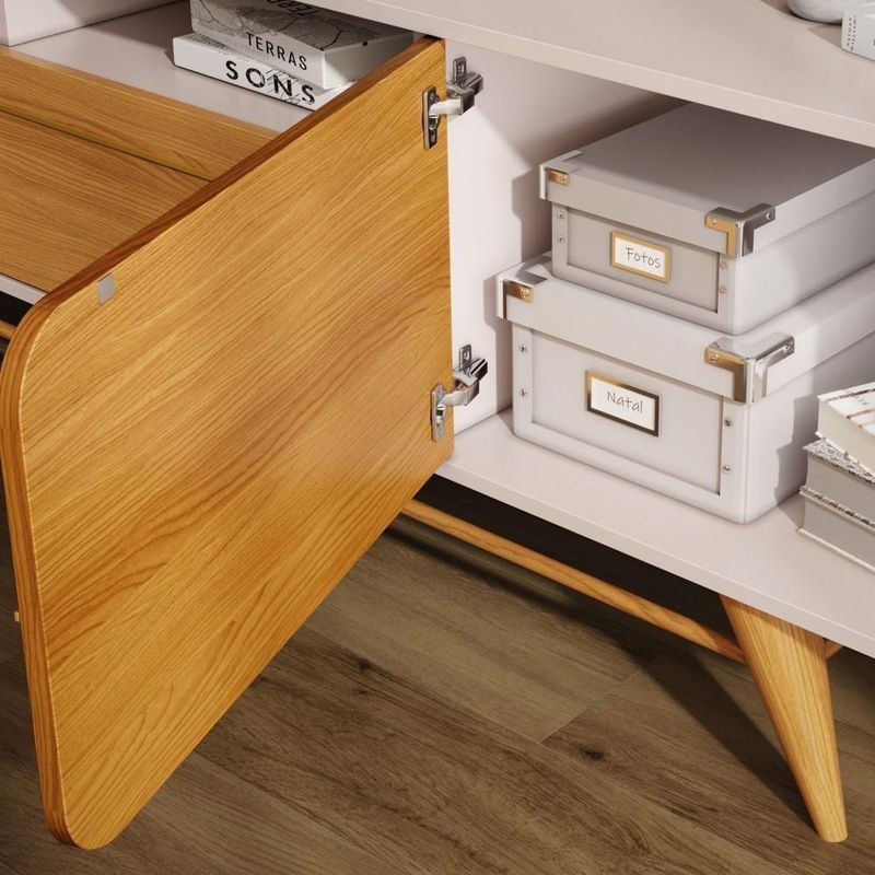 Acomoda TVs de até 85 polegadas e transforma a Sala de Estar com sua elegância, destacando-se pelos cantos arredondados e detalhes decorativos. As três portas espaçosas e os nichos centrais oferecem soluções práticas para armazenamento e organização do ambiente moderno. O Painel Ripado não é apenas um móvel, mas é também uma experiencia de praticidade. Com os pés de madeira maciça torneados, adicionando um charme ao conjunto, este móvel une sofisticação e elegância de forma impecável.