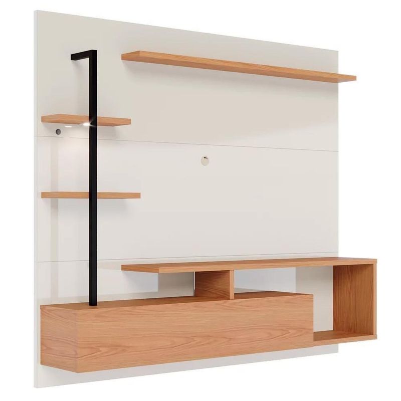 Painel Bancada Suspensa Para Até 58 Pol. Maragogi Off White/freijó - Colibri