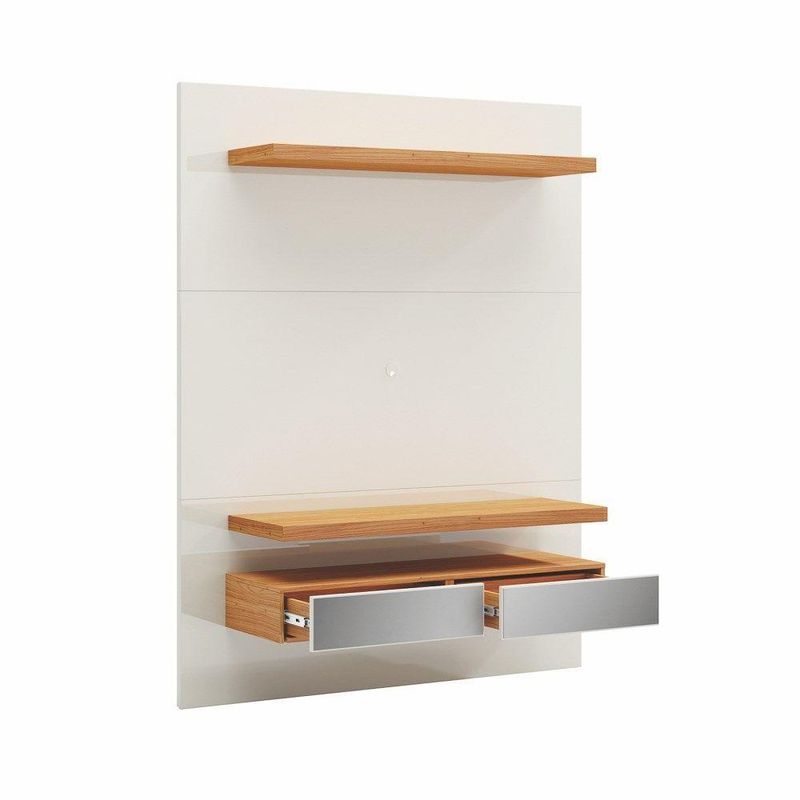 Painel Bancada Suspensa Para Tv Até 55 Pol. Tb106e Com Led 2 Gavetas Off White/freijó - Pradel