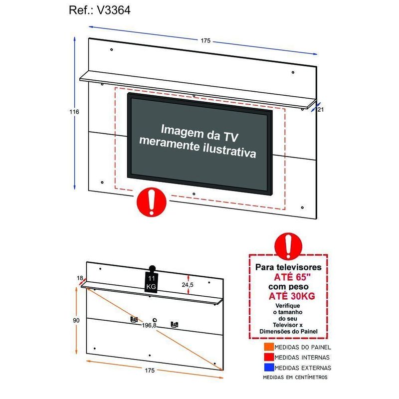 *Devido as variações de tamanho dos televisores no mercado, sugerimos que verifique as medidas da sua e compare com o painel antes de efetuar a compra.
