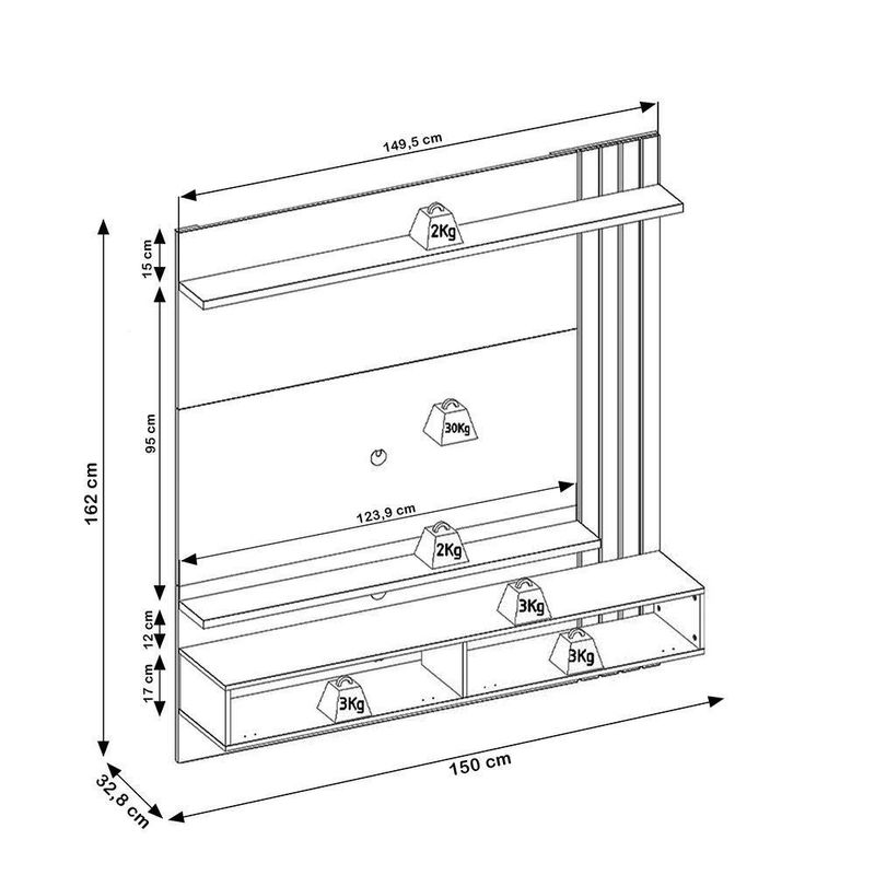 - Confira as dimensões do produto e certifique-se de que passará normalmente por supostos elevadores, portas, escadas e/ou corredores de sua residência. Altura: 162 cm | Color: Marrom Médio | ColorFamily: Marrom Médio | ColorSimple: Marrom Médio | ColorSupplier: Noce Milano Preto Fosco | Com compartimento para alto-falantes: Não | Com rodas: Não | Cor: Noce Milano Preto Fosco | Formato do móvel: Painel Suspenso | Largura: 150 cm | Materiais do corpo: MDP | Material: MDP | Material da estrutura: MDP | Material das corrediças: na | MaterialFamily: MDP | Model: Will | OriginCountry: Brasil | OriginState: PR | Peso: 45 kg | ProductContents: 01 Painel | ProductHeight: 162 cm | ProductInstructions: Produto para uso em ambiente interno, nao devendo ficar exposto ao sol, calor e umidade excessivos. | ProductLength: 33 cm | ProductWarranty: 90 dias após o recebimento do produto | ProductWeight: 45 kg | ProductWidth: 150 cm | Profundidade: 33 cm | Quantidade de portas: 2 | Quantidade de prateleiras: 2 | Requer montagem: Sim | SizeDescription: Altura: 162 cm x Largura: 150 cm x Profundidade: 33 cm | SupplierSimpleName: Painel Para TV 65 Pol com Bancada Suspensa 150cm Will C04 Noce Milano Preto Fosco - Lyam Decor | Tamanho máximo de TV: 65 Polegadas