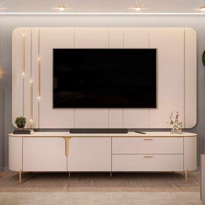 Painel Para Tv 75 Pol E Rack Bancada 241cm Celi D04 Off White - Mpozenato
