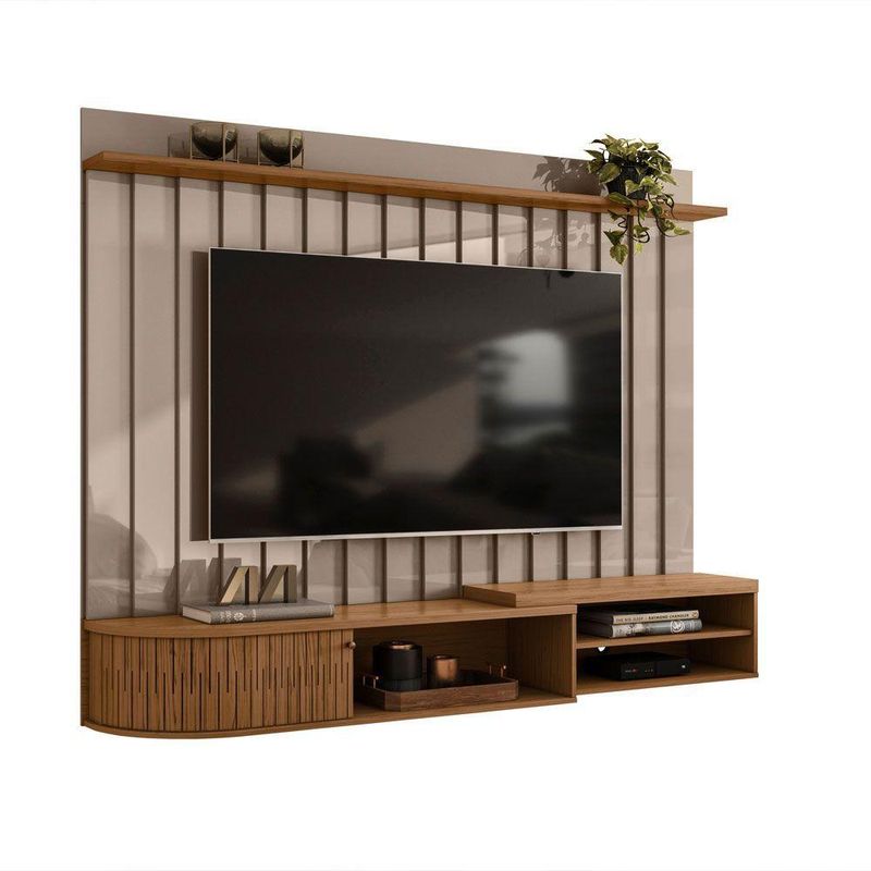 Painel Para Tv 75 Polegadas Com Bancada Suspensa 206cm Monza Fendi/naturale - Pallazio