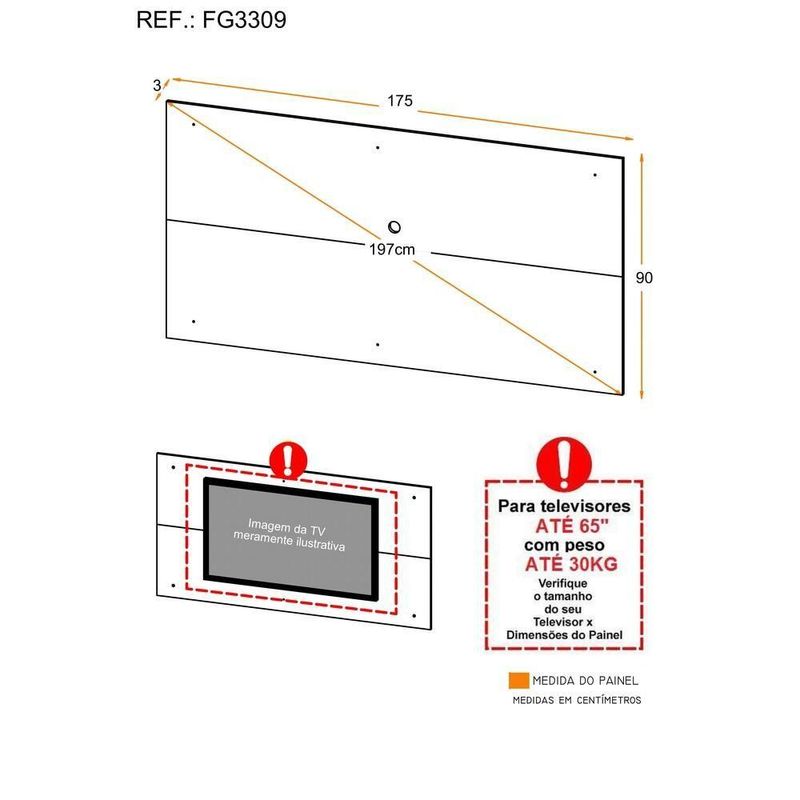 Altura: 90cm | Largura: 175cm | Profundidade: 3cm