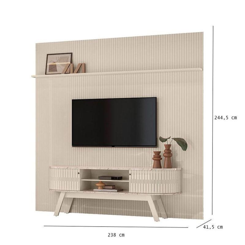 Painel Piso Teto New Guaporé com Rack Bancada Valência New Laguna Ambiente Calacata Off White - MadetecEstá procurando móveis para sua sala de estar? Apresentamos para você este belo Painel da linha Gaporé, uma peça moderna e elegante projetada para proporcionar funcionalidade ao seu ambiente. Possuindo 1 prateleira, permite que você exiba objetos e itens decorativos adicionando um toque de versatilidade. O destaque fica por conta dos detalhes em filetes dourados trazendo sofisticação para qualquer ambiente. Ideal para TV de até 75 polegadas é fabricado pela Madetec, feito com materiais em MDP de alta qualidade, garantindo durabilidade e prolongando a vida útil do móvel, com Rack Bancada Valência com portas flexíveis em MDP com tampo e base com detalhes pés retrô, fica a junção perfeita para sua sala de estar ficar ainda mais moderna. Com um visual limpo e contemporâneo é uma opção atraente para quem busca uma solução de armazenamento prática e elegante para seu ambiente, ao mesmo tempo adicionando toque de classe à sua sala de estar. Confira e garanta o seu!Características técnicas:- Produzido em MDP de 12/25mm