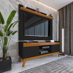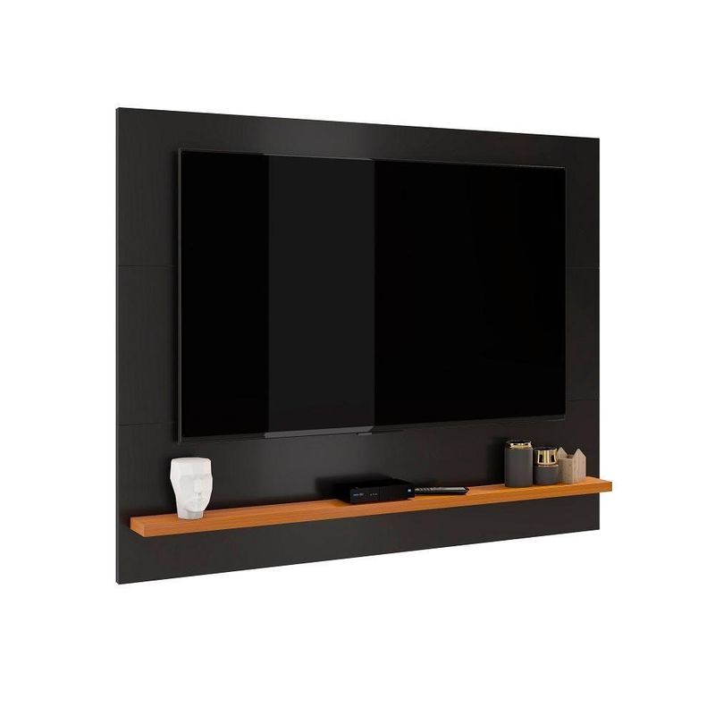 Painel Ripado Com Rack Tv 50 Polegadas 136cm Monaco - Preto E Cedro