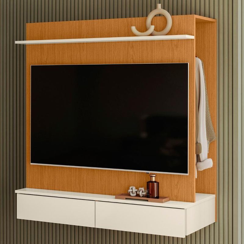 O Painel TV 42 Pol Suspenso com Closet 108cm Mimo A02 Off/Cinamomo, da Mpozenato é a solução perfeita para quem deseja otimizar um Quarto compacto sem abrir mão da funcionalidade e do estilo.