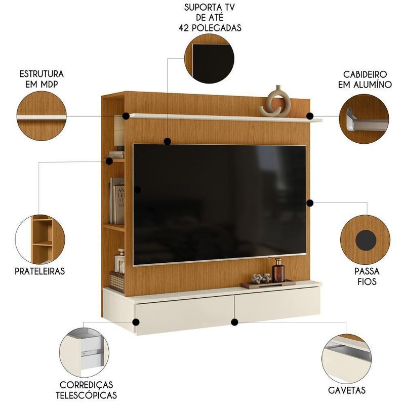 Painel Tv 42 Pol Suspenso Com Closet 108cm Mimo A02 Off/cinamomo - Mpozenato