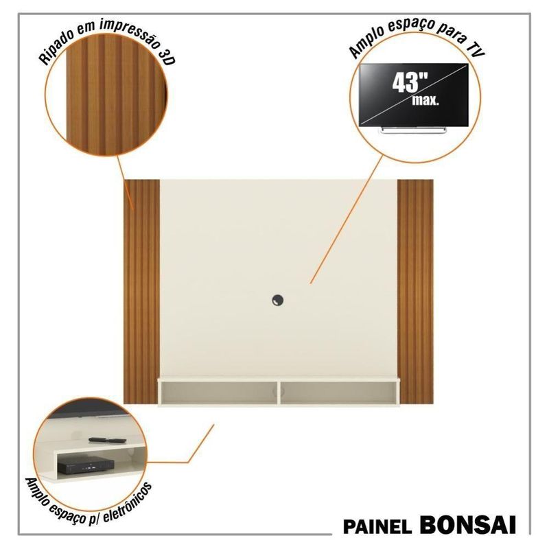 Painel Tv 43 Polegadas Suspenso Com Nichos Bonsai - Off White E Ripado Off White E Ripado