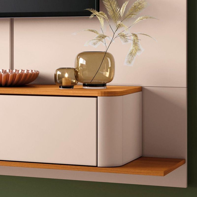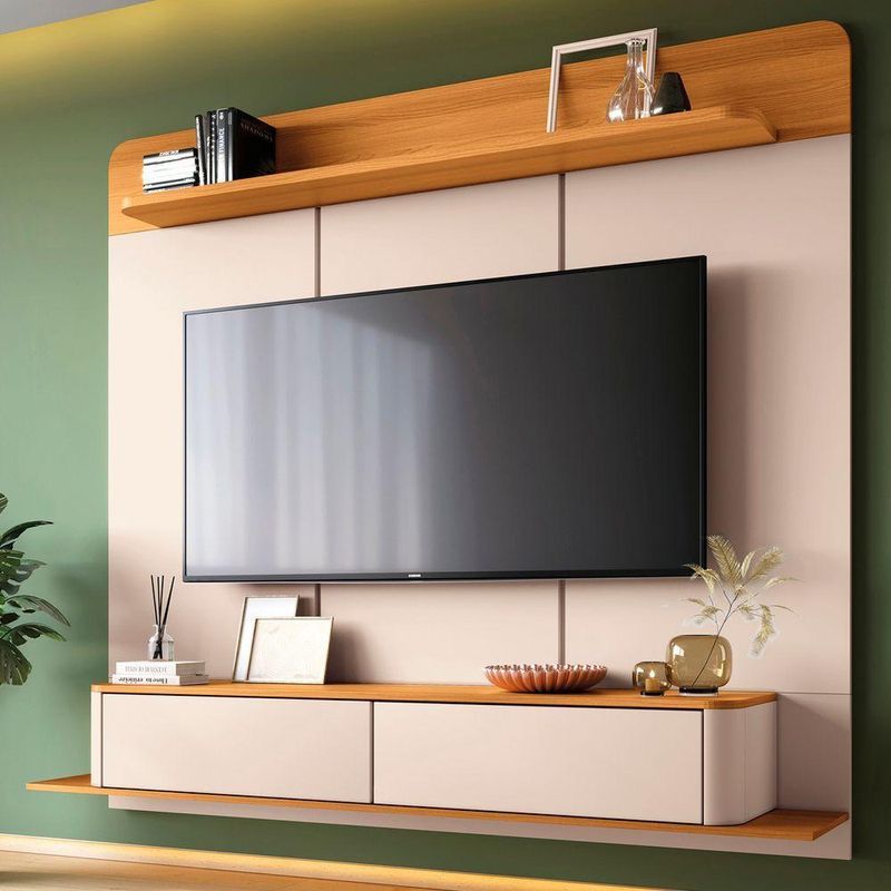 Com capacidade para TVs de até 70 polegadas, é ideal para transformar salas de estar em espaços modernos e confortáveis. Seu design combina de forma harmoniosa linhas retas com cantos arredondados, inspirado nas tendências atuais do design orgânico. A Bancada Suspensa oferece um efeito visual leve, ao mesmo tempo em que proporciona espaço funcional para organizar seus eletrônicos e acessórios. As duas portas basculantes, equipadas com dobradiças metálicas e sistema de abertura fecho toque, garantem praticidade e sofisticação, além de otimizar o uso do espaço. Esse sistema de fechamento garante que o móvel tenha uma aparência clean e sem puxadores, mantendo a estética do ambiente impecável. O Painel Com Bancada é produzido com MDP e MDF, nas espessuras de 25mm e 15mm, conferindo robustez e durabilidade. A prateleira superior de 25mm, adiciona uma camada extra de resistência, sendo perfeita para apoiar objetos decorativos ou outros itens que complementem a decoração. O Painel de TV é a escolha perfeita para quem deseja um móvel de destaque, que une design contemporâneo com praticidade e resistência.