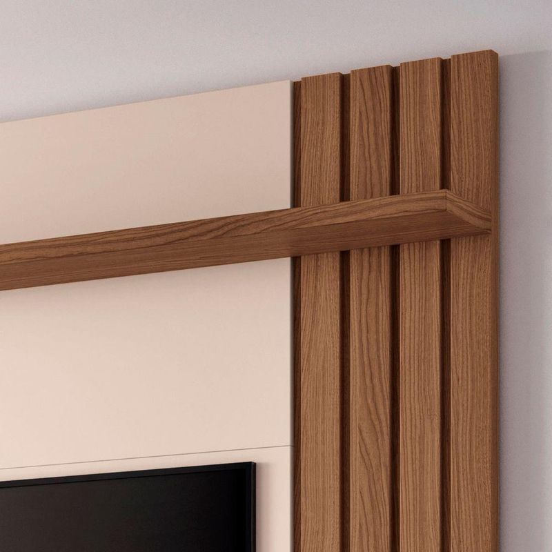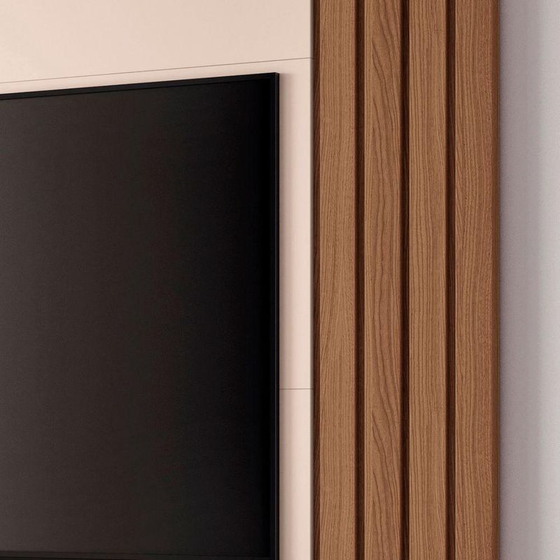 Ele é ideal para TV de até 70 polegadas fixada no painel, garantindo uma visão confortável e uma decoração moderna. Ele tem detalhes laterais ripado, que dão um toque de charme e elegância ao ambiente. Além disso, o painel conta com tampo e prateleira superior com espessura de 25mm, que oferecem resistência e 1 nicho para objetos decorativos ou eletrônicos. O Painel Suspenso também tem duas portas basculantes com dobradiças metálicas, que facilitam a abertura e o fechamento. As portas têm puxador em poliestireno com acabamento na cor champanhe, que combinam com o Design Moderno. O painel é produzido em MDP e MDF de 25mm e 15mm, que garantem durabilidade e qualidade ao produto.