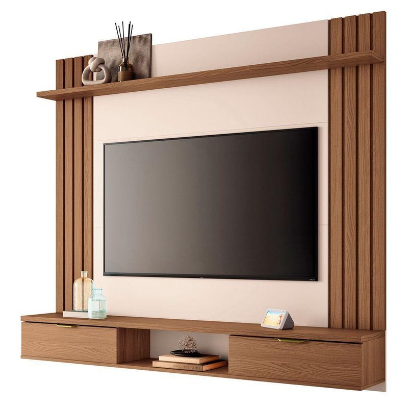 Painel Tv 70 Pol 180cm Bancada Suspensa Solus Off/castanho - Hb Móveis