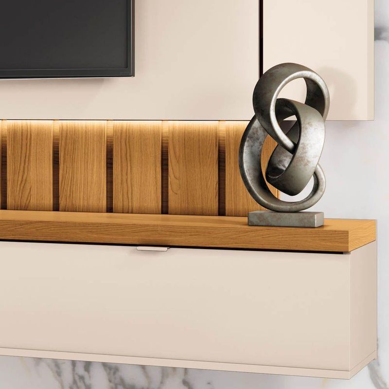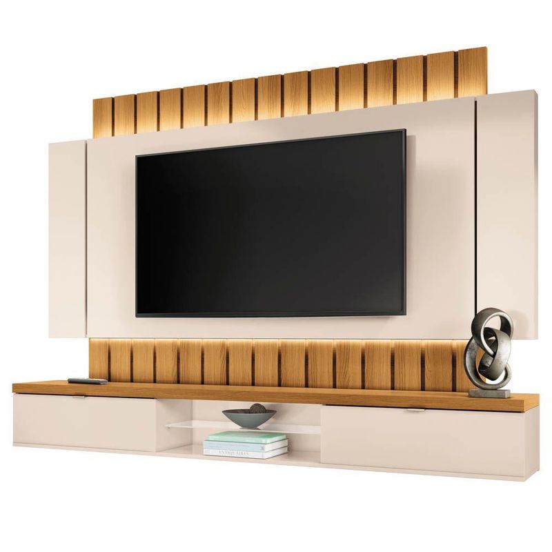 Painel Tv 70 Pol 219cm Bancada Suspensa Illusion Off/cinamomo - Hb Móveis
