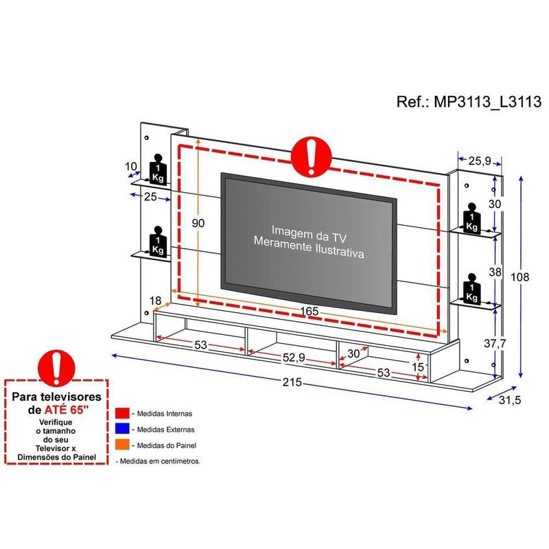 *Devido as variações de tamanho dos televisores no mercado, sugerimos que verifique as medidas da sua e compare com o painel antes de efetuar a compra.