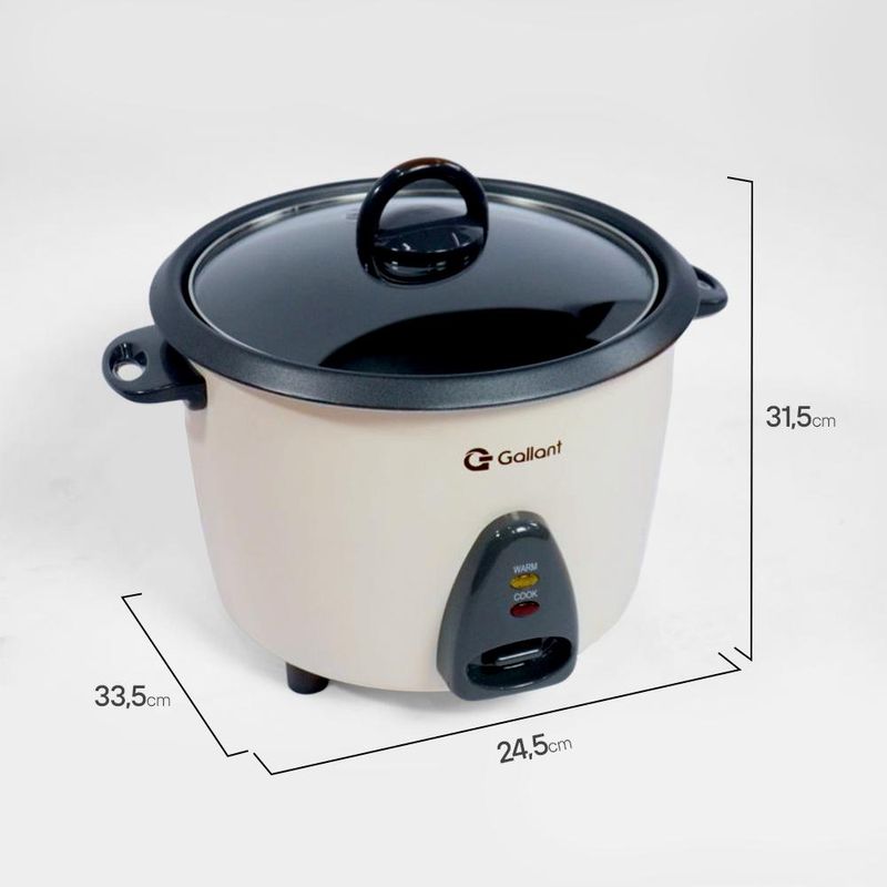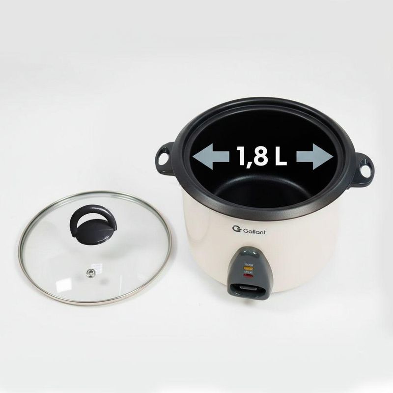 Panela de Arroz Elétrica Gallant. Com capacidade para até 1,8 L, equivalente a 10 xícaras, este modelo é ideal para famílias de médio porte que buscam praticidade no dia a dia sem abrir mão de qualidade.Além de preparar diferentes tipos de arroz, a panela também é perfeita para aveia, sopas e até receitas no vapor, graças ao acessório vaporizador de alumínio. Isso garante versatilidade na cozinha e permite variar o cardápio com mais saúde e menos esforço.Com design moderno na cor Off-White, a Gallant une beleza e funcionalidade. A tampa de vidro facilita acompanhar o preparo sem precisar abrir a panela, enquanto o revestimento antiaderente garante mais praticidade na hora da limpeza. Com 700W de potência e desligamento automático, você tem refeições no ponto certo e seguras.