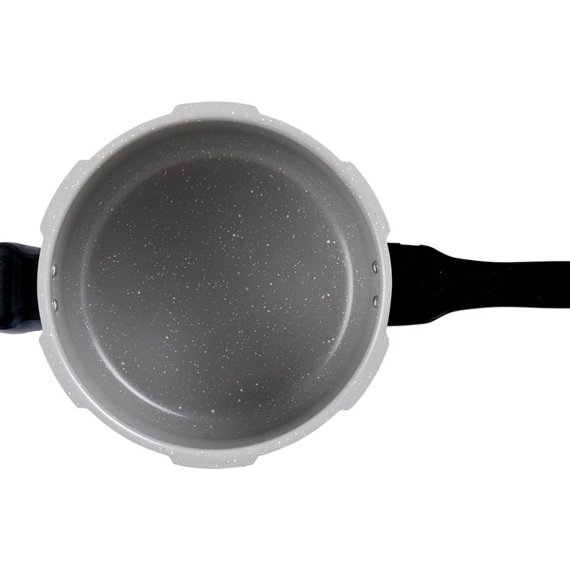 A Panela de Pressão com Fundo de Indução Super tem capacidade para 5,4 L, diâmetro de 22 cm e altura de 15 cm e seu acabamento é na cor Gris.