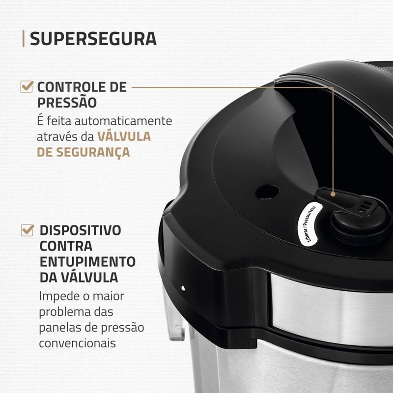 A panela de pressão elétrica da Mondial tem muitos mecanismos que garantem total segurança para você e sua família durante o uso. Os principais são: