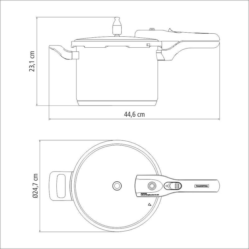Modo de Uso: Evite deixar alimentos na panela por muito tempo. O sal também poderá provocar manchas e até corrosão. Se surgirem manchas brancas devido ao excesso de cloro na água ou amido dos alimentos, limpe-as com um pouco de vinagre ou suco de limão. Chamas muito fortes podem causar alteração na cor do aço inox, provocando manchas douradas ou azuladas. Recomenda-se utilizar fogo baixo. Nunca remova os parafusos de sua panela de pressão. Os componentes só devem ser manuseados pela Tramontina ou sua rede de Assistência Técnica Autorizada. Para uma maior vida útil do anel de vedação da tampa, unte-o periodicamente com óleo de cozinha. Substitua este anel de vedação a cada 2 anos para um bom desempenho do produto, ou sempre que estiver danificado. A válvula de trabalho deve ser substituída a cada 5 anos para um bom desempenho do produto, ou sempre que estiver danificada.