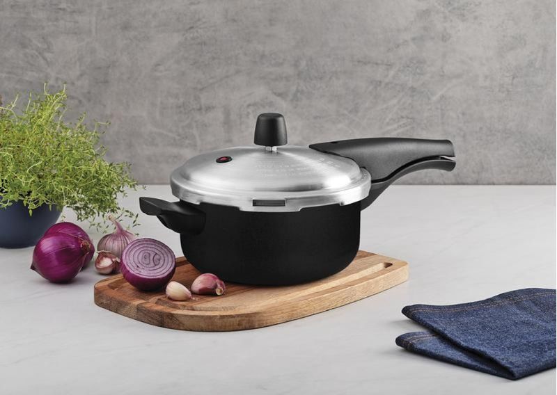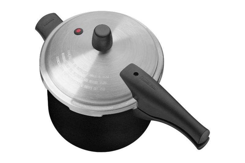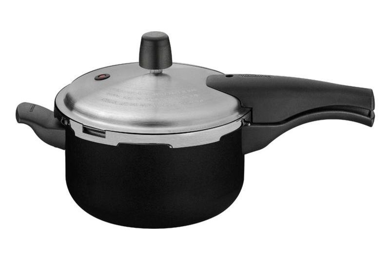 Pensada para quem valoriza agilidade no preparo e um visual discreto e moderno, a panela de pressão Tramontina Vancouver na cor preta é uma excelente aliada na cozinha. Com 20 cm de diâmetro e capacidade de 3 litros, é fabricada em alumínio com revestimento interno e externo antiaderente Starflon Max, que facilita o cozimento e evita que os alimentos grudem. A distribuição uniforme de calor acelera o preparo das receitas, enquanto as três válvulas de segurança garantem proteção total durante o uso. Os cabos e alça em baquelite antitérmico oferecem firmeza e evitam o superaquecimento ao toque. Um item essencial para quem busca eficiência, segurança e a confiabilidade da Tramontina no dia a dia.
