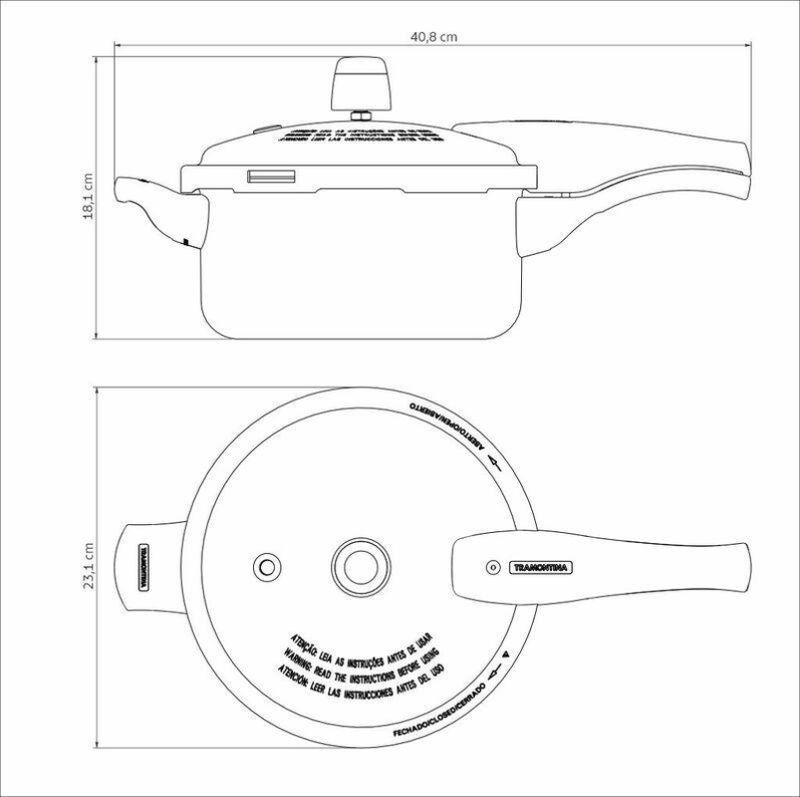Recomendações de Uso:Modo de uso: A capacidade volumétrica máxima para cozimento é de 2/3 da capacidade total da peça. Para manter sua panela de pressão bonita, recomenda-se lavar somente com detergente neutro e esponja macia. Ao utilizar utensilios quentes tenha cuidado redobrado. Se necessário, utilize proteção para as mãos e mantenha fora do alcance de crianças. Para sua segurança, ao utilizar utensílios com cabos, mantenha os mesmos sempre voltados para o centro do fogão. Ao utilizar seu utensílio em fogões com grade, mantenha a peça centralizada e alinhe o cabo com a grade, para reduzir o risco de queda. Para uma maior vida útil do anel de vedação da tampa, unte-o periodicamente com óleo de cozinha. Substitua este anel de vedação a cada 2 anos para um bom desempenho do produto, ou sempre que estiver danificado. A válvula de trabalho deve ser substituída a cada 5 anos para um bom desempenho do produto, ou sempre que estiver danificada. Antes do primeiro uso, lave com esponja macia, sabão neutro ou detergente líquido. Depois de secar, unte a área interna com óleo ou gordura e leve ao fogo por um ou dois minutos. Deixe esfriar e lave novamente. Seu utensílio Starflon está pronto para uso com ou sem gordura, sempre em fogo baixo ou médio (nunca superior a 260 °C). Para mexer os alimentos use somente utensílios de silicone, nylon ou madeira. Com o uso, o cabo e o pegador podem afrouxar devido à dilatação normal dos materiais. Reaperte apenas o suficiente, sem forçar. Limpeza: Evite a imersão do utensílio quente em água fria. Nunca utilize produtos abrasivos na lavagem. Se deixar queimar alimentos, umedeça a área e reserve até que possa remover os resíduos grudados com esponja e sabão. Para descarte do produto e embalagem siga as orientações de reciclagem vigentes. Para consultar uma assistência técnica autorizada acesse o site onde.tramontina.com.br e busque pelo produto "Panela de Pressão de Alumínio".