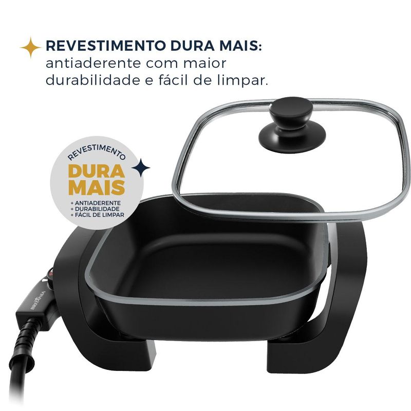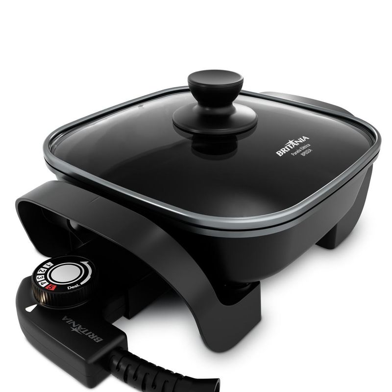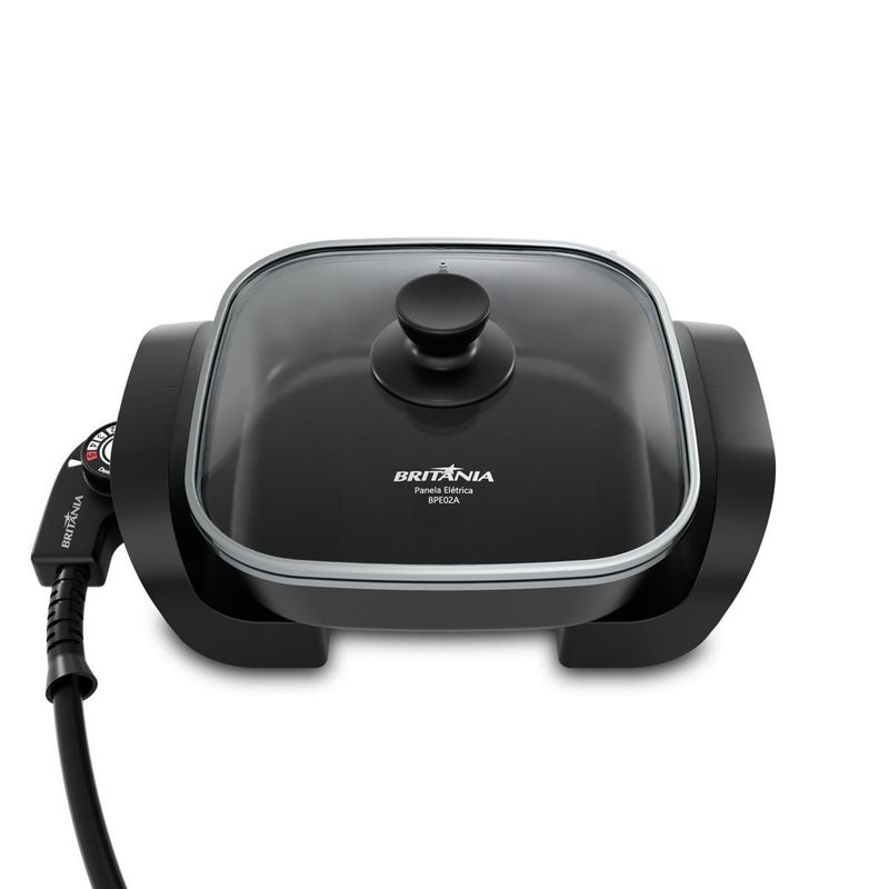 A Panela Elétrica Britânia 2L 5 Temperaturas 650W BPE02A é a companheira ideal para quem busca praticidade e sabor na cozinha. Com ela, você prepara desde um delicioso café da manhã até um jantar completo, sem se preocupar com a bagunça e a limpeza. Com capacidade de 2 litros, a Panela Elétrica Britânia é perfeita para preparar refeições para toda a família. Seu revestimento antiaderente facilita a limpeza e garante que seus alimentos não grudem. Além disso, as alças com toque frio proporcionam segurança durante o manuseio, evitando queimaduras. Desenvolvida com 5 níveis de temperatura ajustáveis, permitem que você escolha a temperatura ideal para cada tipo de alimento, ou seja, garante resultados perfeitos. Já a tampa de vidro temperado permite que você acompanhe o preparo dos alimentos sem precisar abrir a panela. Transforme a sua cozinha com a Panela Elétrica Britânia BPE02A! Tenha mais praticidade, segurança e sabor em suas refeições. • Revestimento: Base água • Potência: 650W • Seletor de temperatura: 5 níveis de temperatura máxima até 230 graus • Capacidade (L): 2L • Tampa com saída de vapor • Material da tampa: Vidro temperado • Alças: Alças laterais com toque frio • Pés antiderrapantes • Luz indicadora: Luz indicadora de aquecimento.