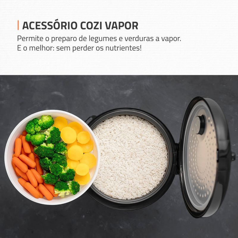 ACESSÓRIO COZI VAPOR: Acompanha cesto que permite cozinhar deliciosos legumes e verduras a vapor, sem perder seus nutrientes.